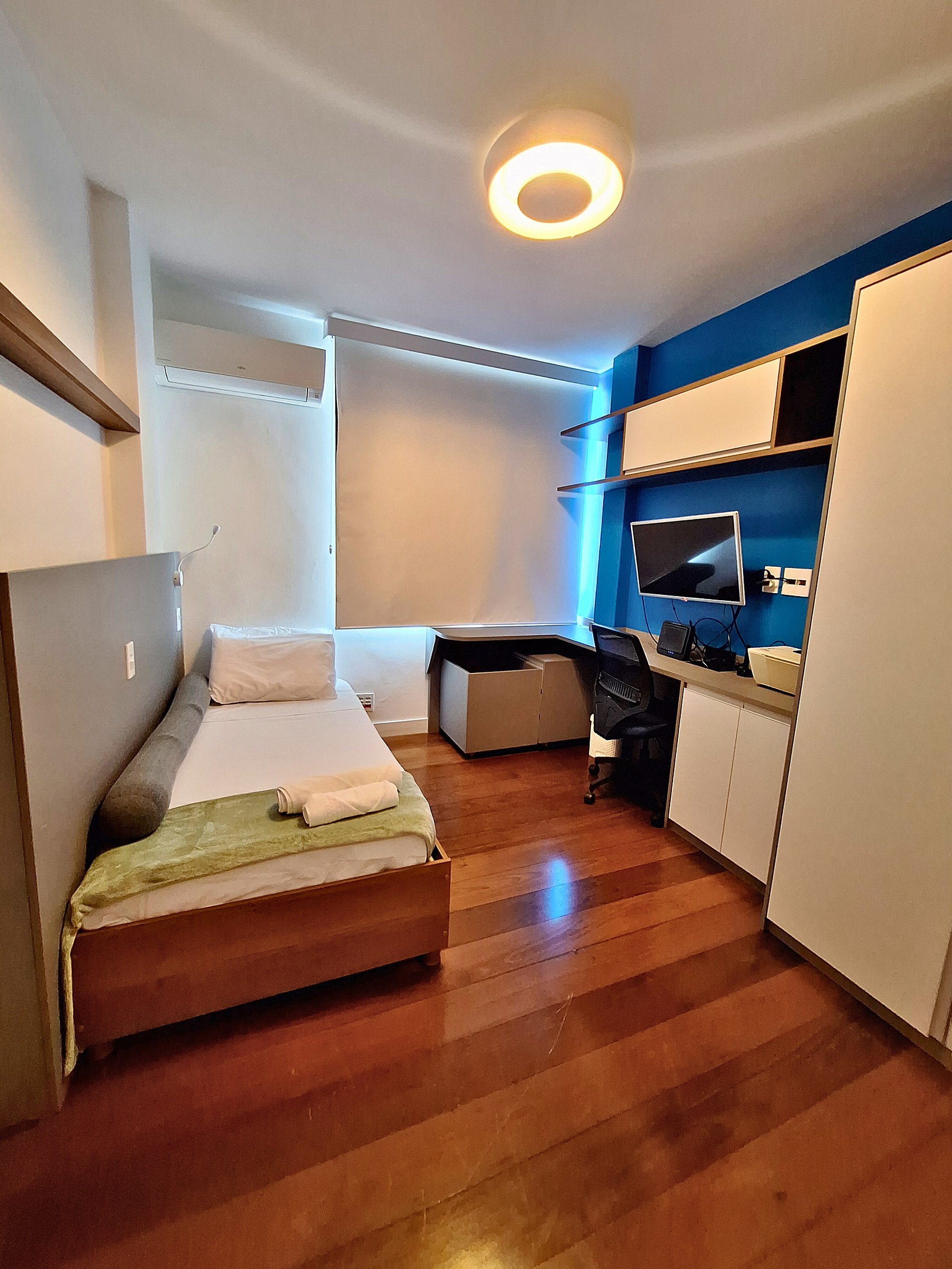 • Conforto total: 3 quartos com camas confortáveis, ar-condicionado, blackout, enxoval de qualidade e armários espaçosos.