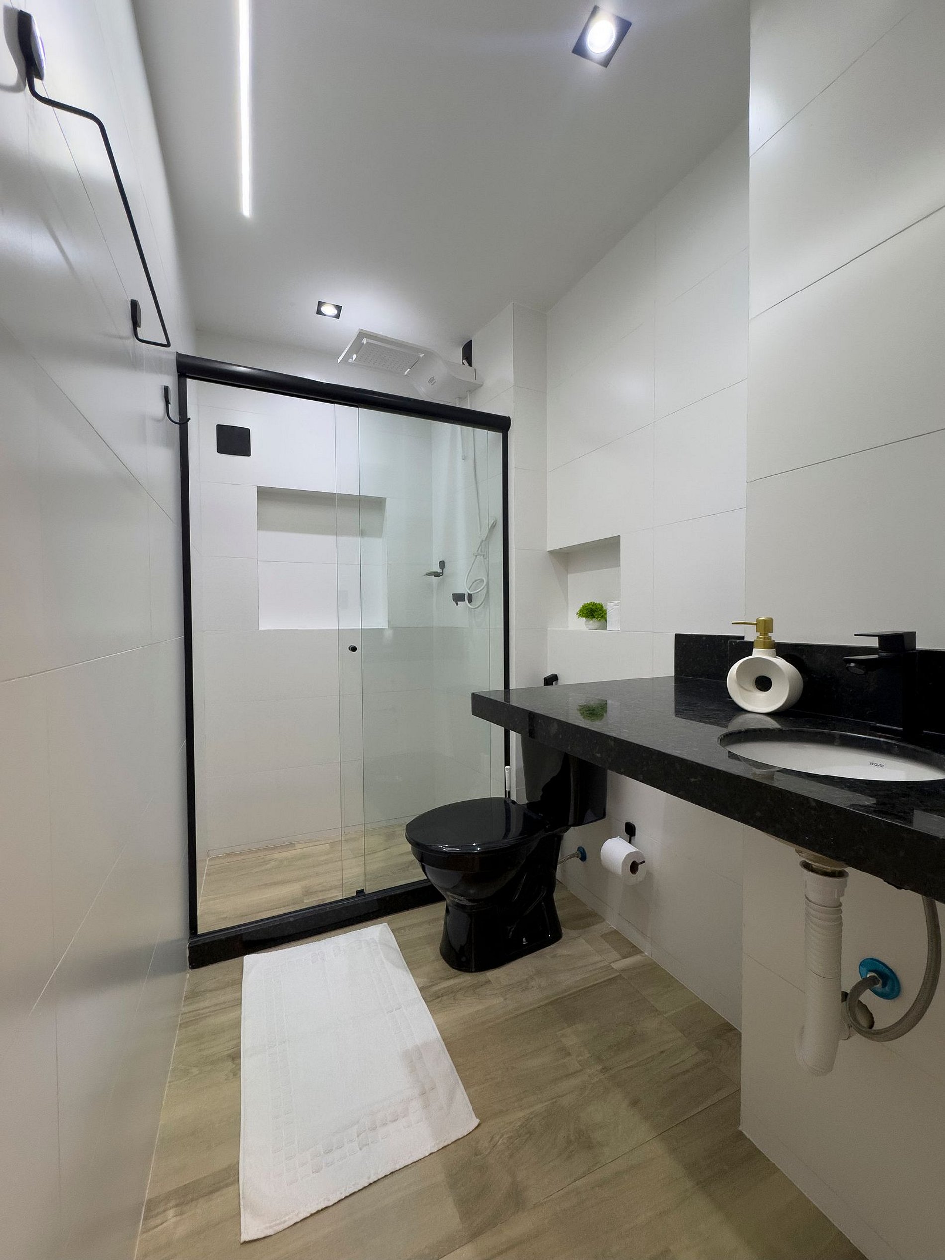 • KITCHEN: Induction cooktop, microwave, refrigerator with freezer, drip coffee maker, water purifier, and complete utensils. • COMFORT: Split air conditioning, double bed with high-quality linens, total blackout for peaceful nights. • WORK & TECH: Wi-Fi, Smart TV, and a versatile dining/work table. • BATHROOM: Heated shower, hairdryer, and towels included. • SECURITY: 24-hour concierge and electronic lock with password. • EXTRA: Mini market available in the building.