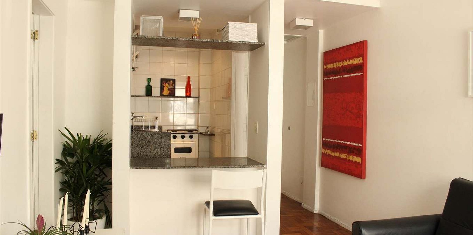 - Cocina americana equipada para comidas rápidas Baño con ducha y agua caliente 45m² bien distribuidos para que hasta 4 personas disfruten de lo mejor de Río.